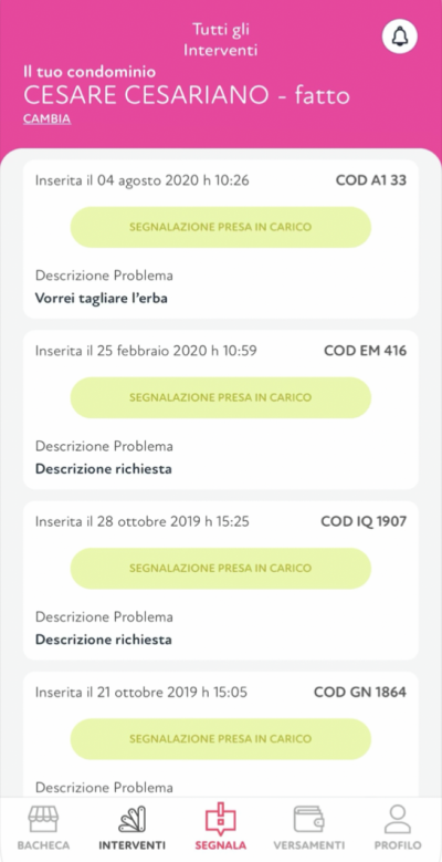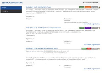 Potrai accedere a tutte le richieste di intervento, tue o degli altri condomini, aggiungendone di nuove, inserendo eventuali commenti e verificando le attività in corso per ogni singola richiesta.