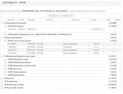 Trattasi del rendiconto consuntivo che arriverà a fine gestione, ma qui potrai vedere in tempo reale le spese a mano a mano che vengono effettuate, con tutto il dettaglio e la possibilità di scaricare i documenti.