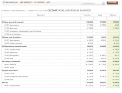 Il raffronto preventivo e consuntivo, per verificare in tempo reale il livello delle spese rispetto a quanto preventivato.